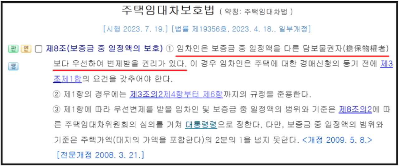 일정 요건이 되면 최우선하여 해당 금액을 먼저 임차인에게 주는 것입니다.