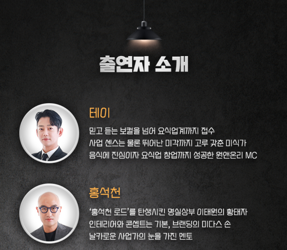 MBN의 창업 오디션 프로그램인 '사장의탄생-오픈전쟁'에 출연을 합니다.