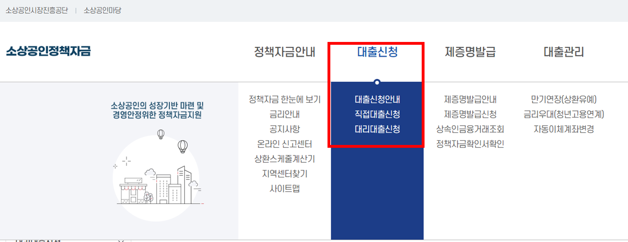 소상공인정책자금 전용 사이트
