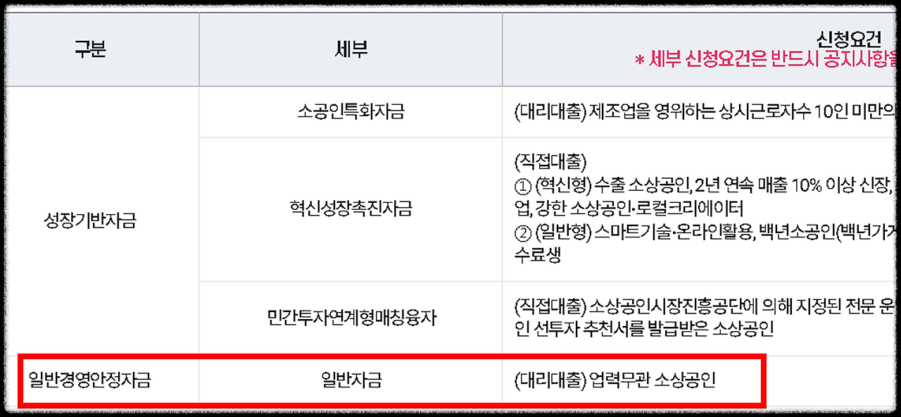 - 일반경영안정자금 (세부는 1가지)
